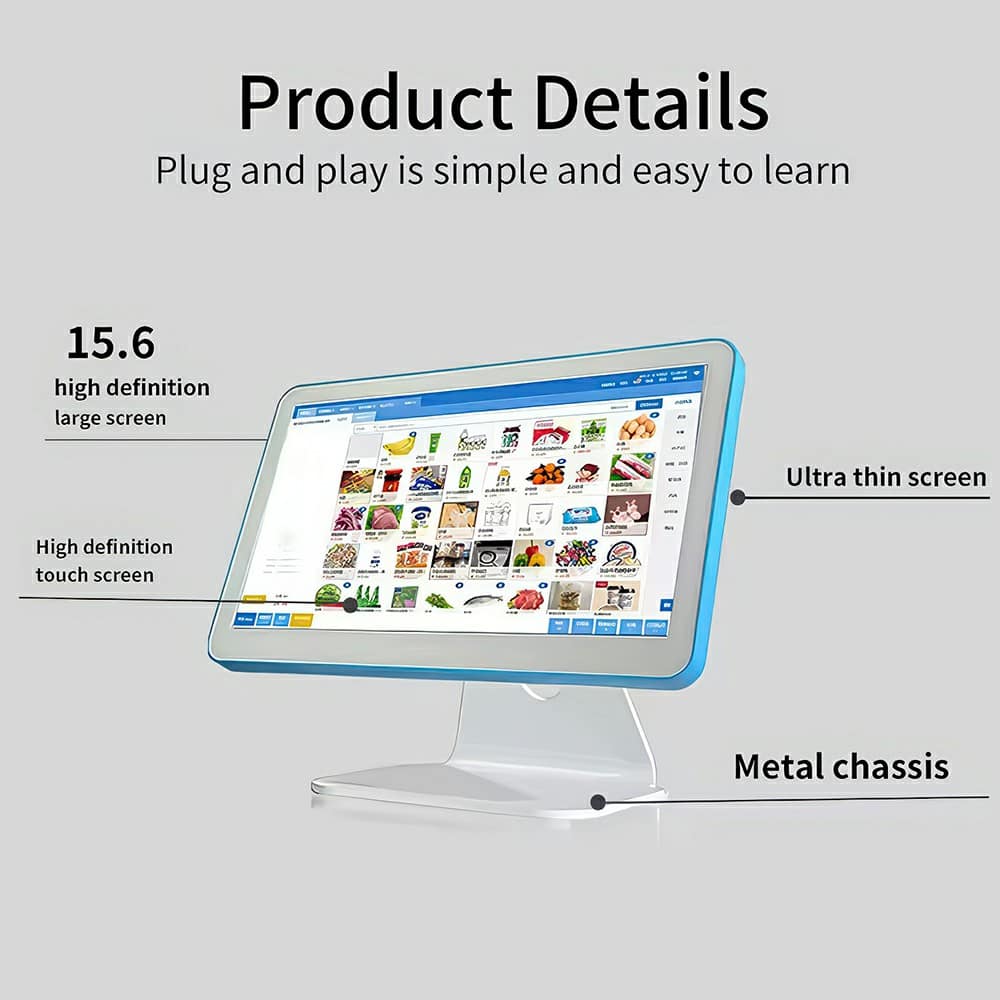 The 15.6-inch All-in-One POS Terminal is a flexible commercial touch screen system designed for businesses that require efficient checkout operations and reliable peripheral integration. Unlike traditional bulky cashier systems, this compact POS terminal combines touch interaction with extensive hardware connectivity, creating a streamlined workspace for modern businesses.