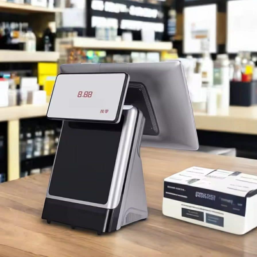 A: A dual screen POS system uses two displays—one for the operator and one for the customer—to improve checkout transparency and efficiency.