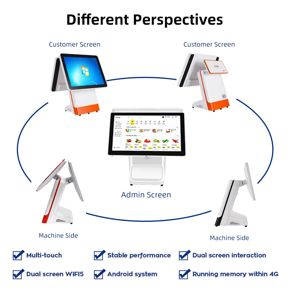 This dual monitor POS system helps businesses work much smarter. To start with, it features two monitors. Specifically, one screen faces the staff while the other faces the customer. As a result, transactions become faster and more transparent. Moreover, the system runs smoothly thanks to its powerful hardware.