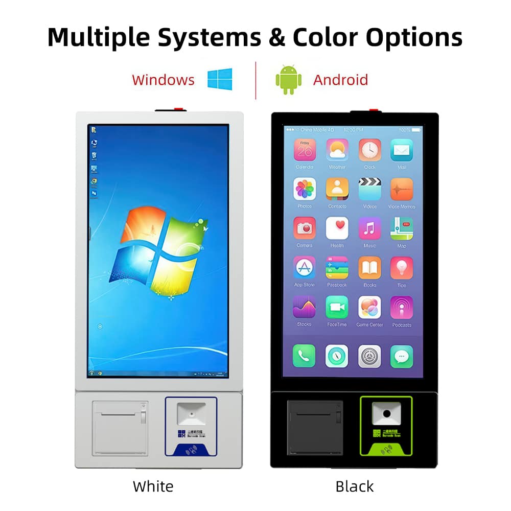 A: This kiosk supports Android and Windows systems, allowing flexible integration with different self-service software applications.