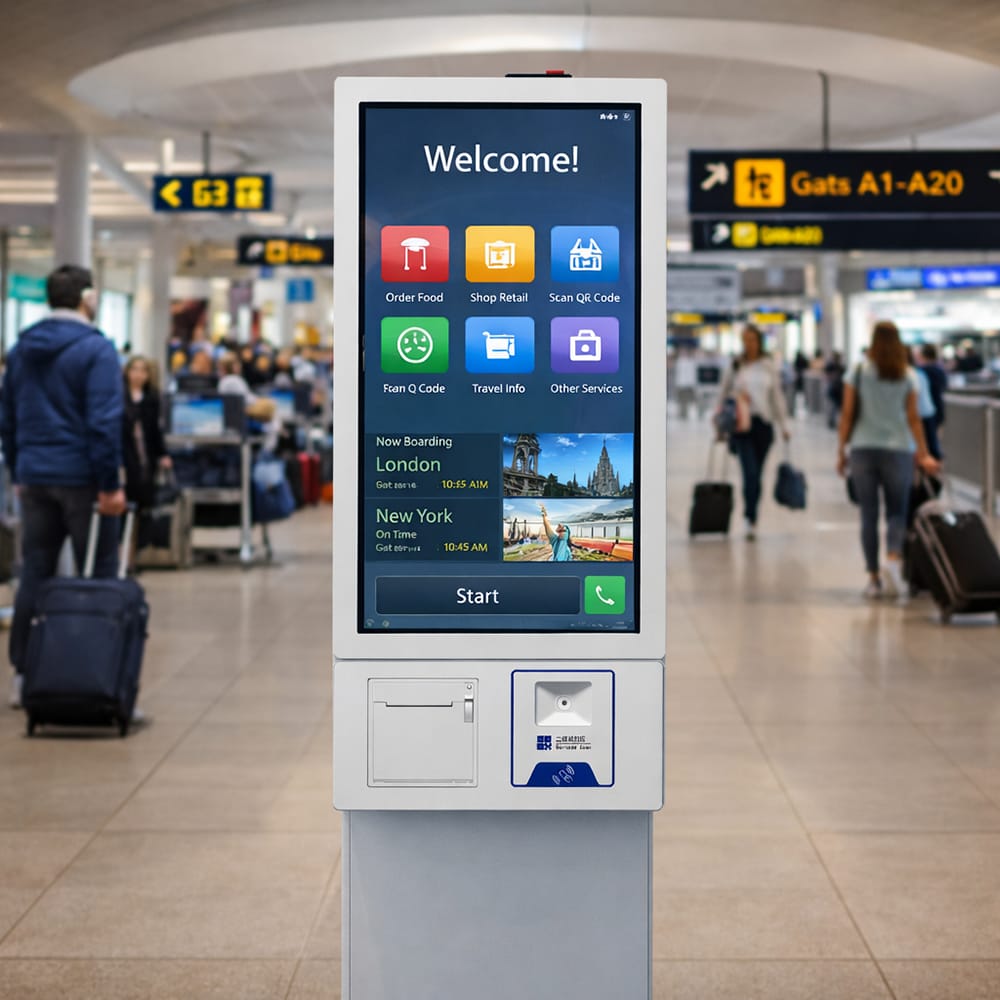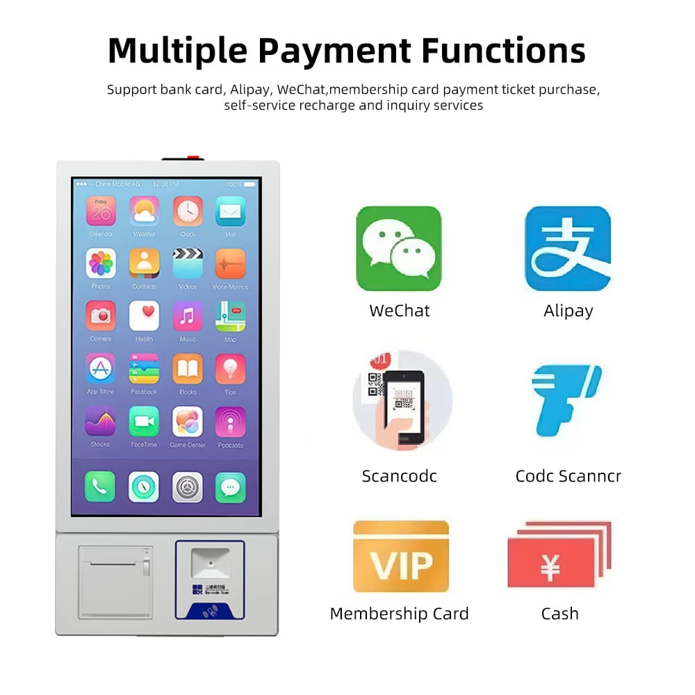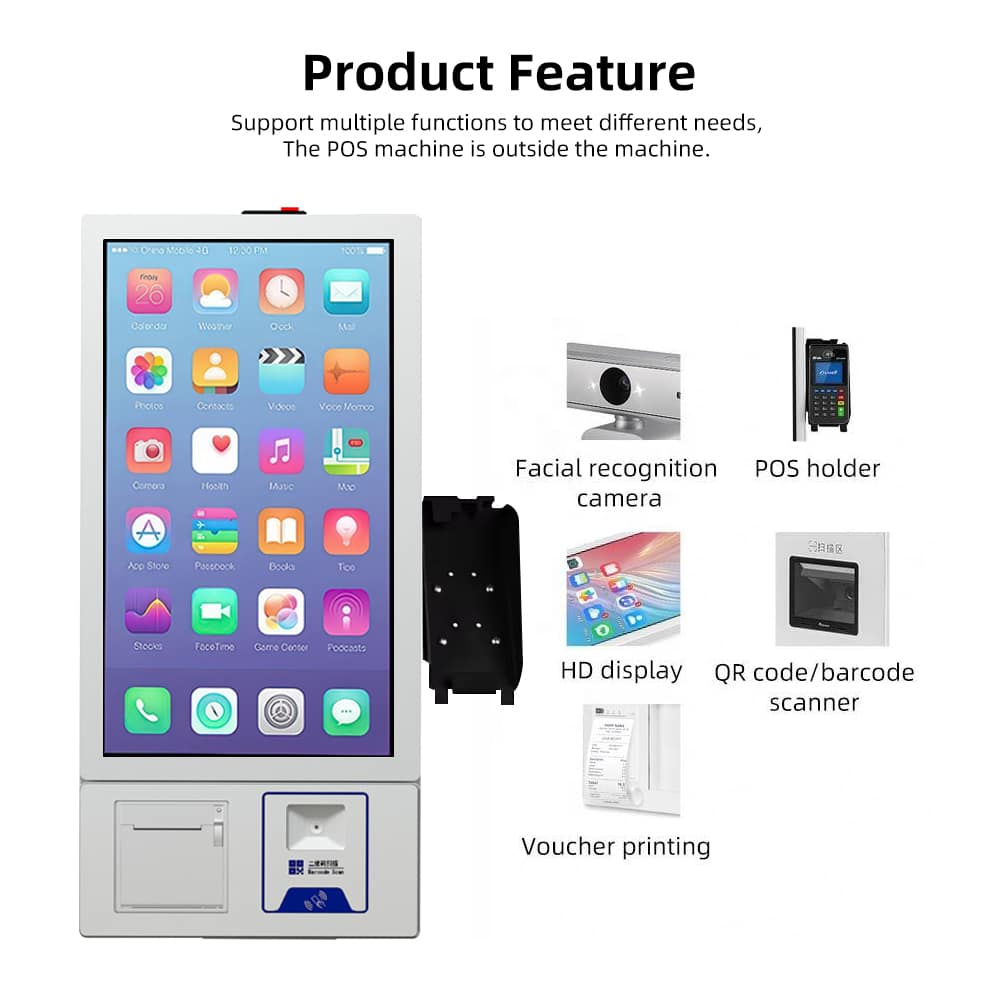 Built for modern commercial environments, this self-service kiosk can be used in retail stores, supermarkets, restaurants, shopping malls, transportation hubs, banks, and public service locations. Its modular design and optional mounting methods make it an ideal solution for businesses looking for a scalable and customizable kiosk deployment.