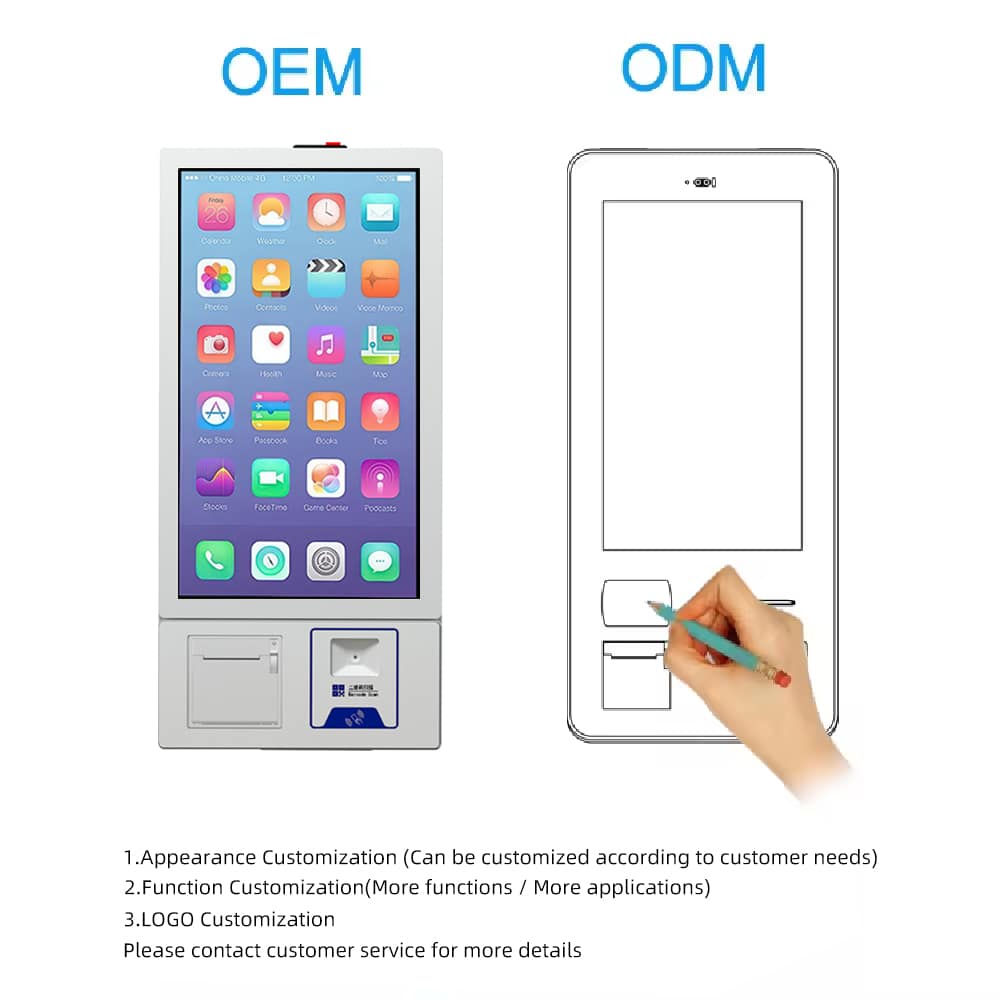 The Android Windows Self Service Kiosk is a versatile interactive terminal designed for self-checkout, self-ordering, payment, and customer service automation. With a responsive touch screen, support for QR / barcode scanning, and flexible system compatibility, this kiosk helps businesses reduce labor costs, improve operational efficiency, and deliver a smoother customer experience.